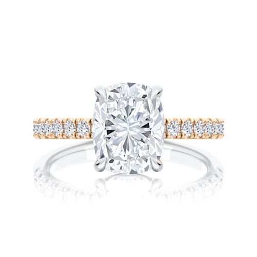 Rose Gold Como Rectangular Cushion Diamond With Side Stones Engagement Ring